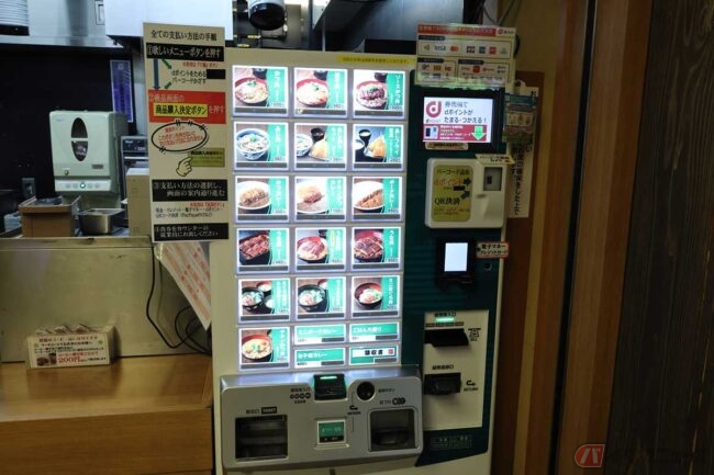 「あじあじセット」はアジフライが1枚と「あじ丼」のセットです。丼の説明には「くせの少ないあじの刺身に甘口醤油をなじませた」とあります。こっちも美味しそうなのでオーダー決定です。カウンター横の券売機で食券を購入、カウンターで食券を渡し、出来上がると「ピピピー」と鳴るポケベル的な機械を受け取ります。