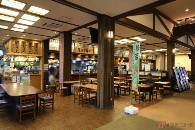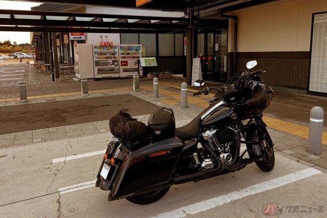 美味しいアジフライを求めて、筆者(増井貴光)が訪れたのは新東名の「遠州森町PA」(下り)です。翌日の早朝から愛知県で仕事があるので、前泊するために愛車のハーレー「ロードグライド」で夕方の新東名を走ってきました。ガソリン満タンで400kmほど走れることもあって、いつもならノンストップで名古屋あたりまで行ってしまうのですが、昼食をとらずに出てきてしまったこともあって、ここで自分の胃袋を満たすことにします。