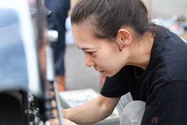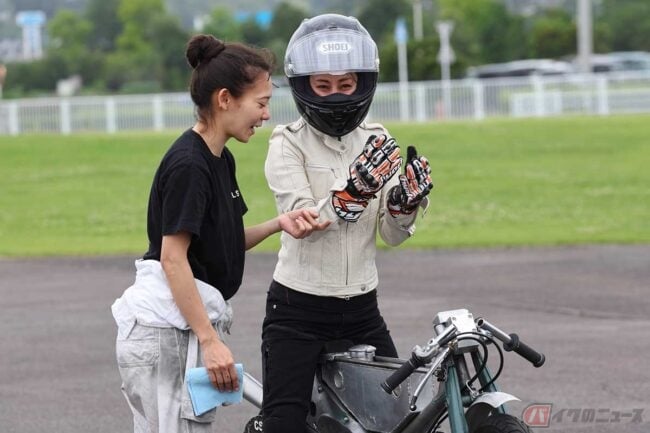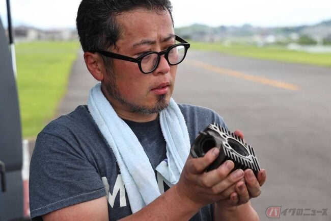 初めてボンネビルレーサーを走らせた黒木さんは「メカニックチームが苦労して時間をかけて完成させた車両でしたので緊張しました。でも、乗り始めた瞬間にC100との相性が良いことが分かりました。ノーマルから分解して磨きも自分が携わったので愛着もあります」とのこと。