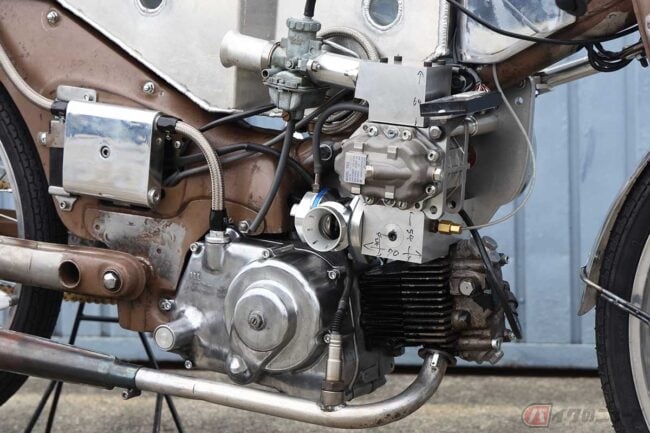 最高出力が4.5馬力しかないベース車両にスーパーチャージャーを装着すると、クランクに抵抗が生まれる分パワーが落ちる可能性もありますが、標高が1000mを越えるボンネビルでは、強制的にエンジンに空気を送り込む過給機付きが有利ということもあります。