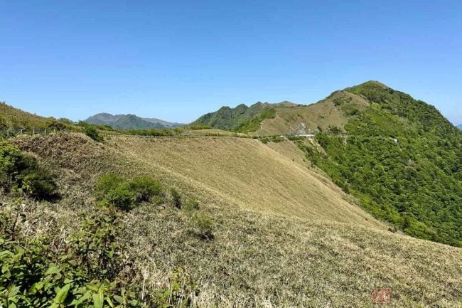 UFOライン方面の展望が開けているのも土小屋の特徴です。先ほど通過してきたUFOラインを遠くに見ることができます。自分自身の脚で走破した絶景ルートを噛み締めながら、ビッグライドを終えた喜びに浸ります。