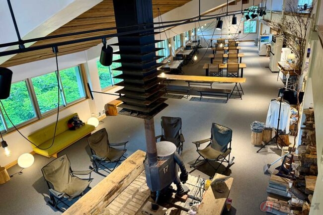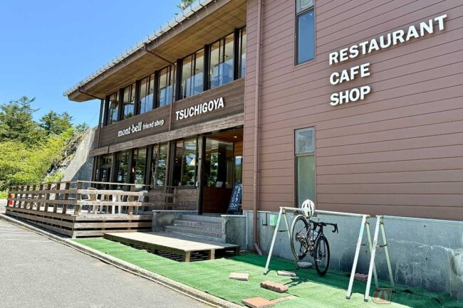 最高地点から先に下っていくと現れるのが、2021年4月にリニューアルした「山荘しらさ」です。UFOラインの起点から21km地点にある、貴重な補給ポイントです。
