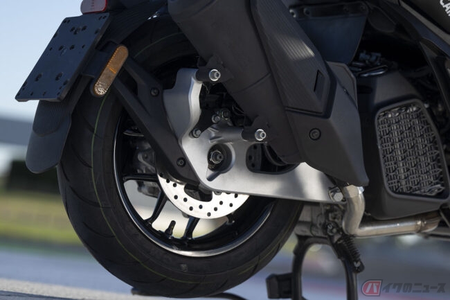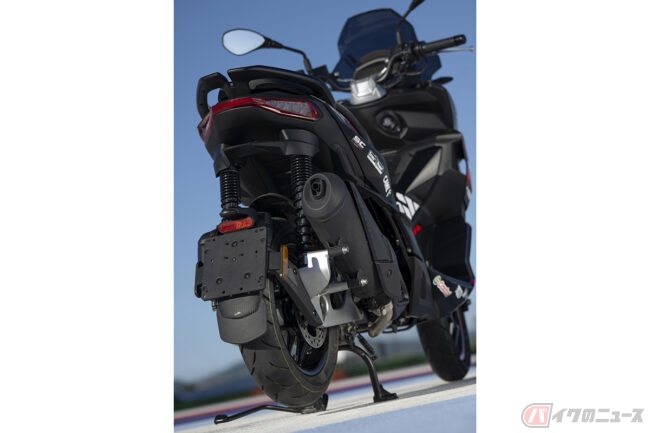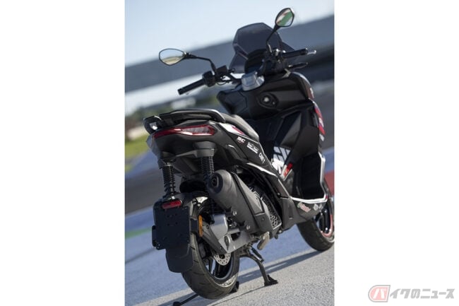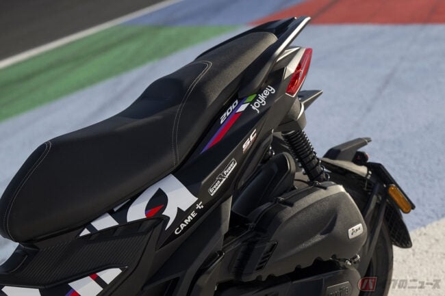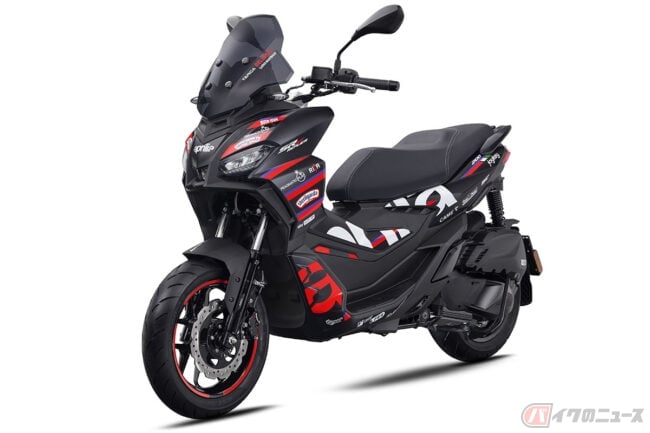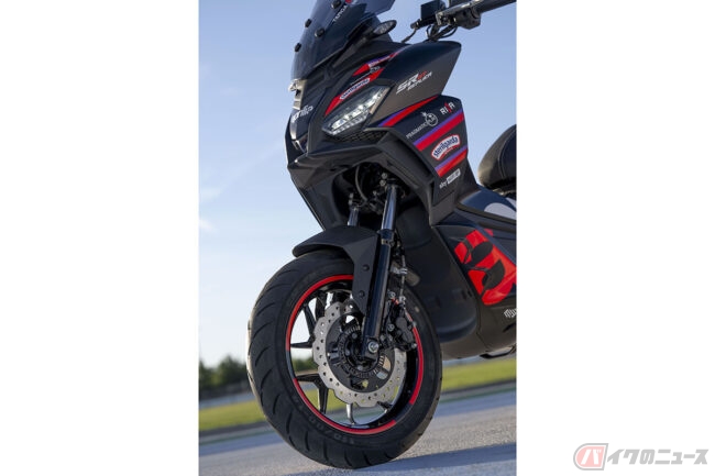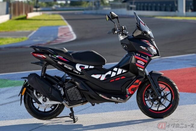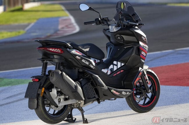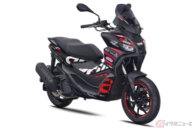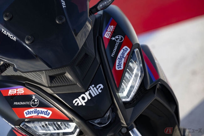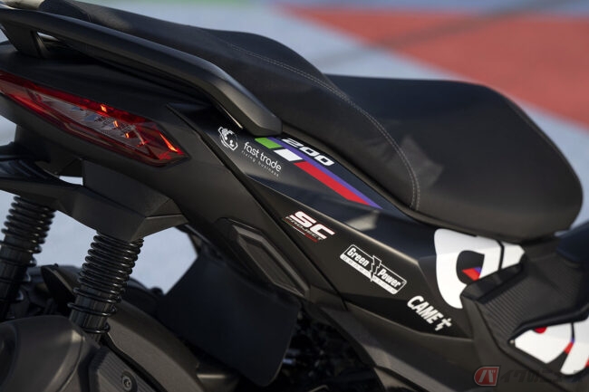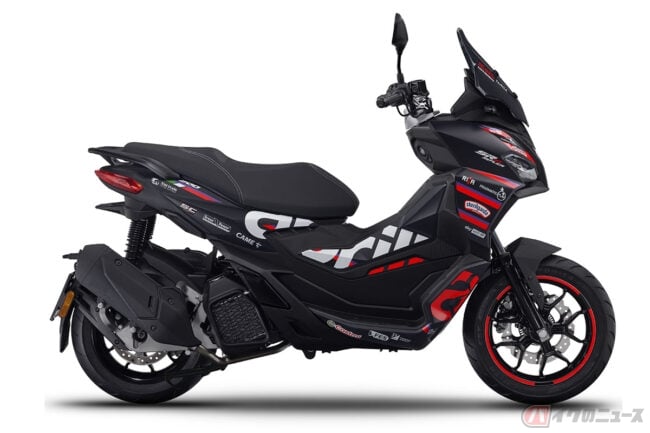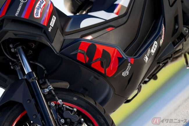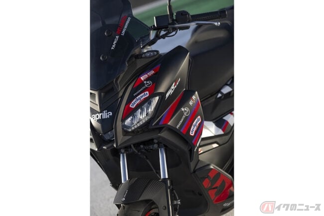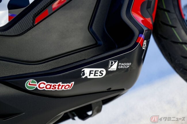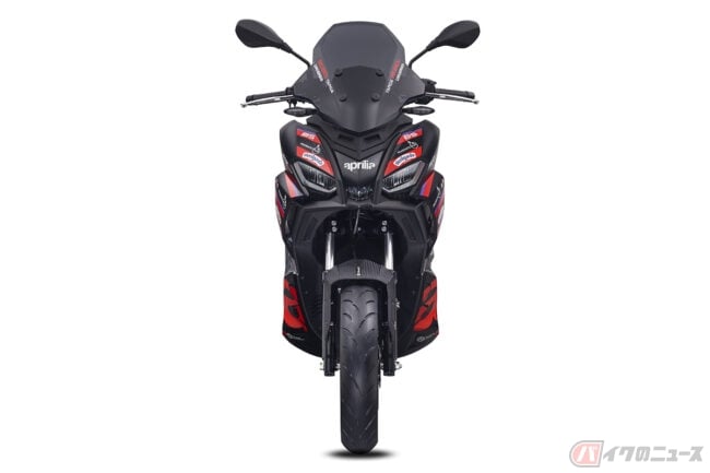 さらにブラックのフロントホイールにはレッドのストライプが施され、MotoGPで注目を集めるアプリリアの最速マシンへのオマージュとなっています。