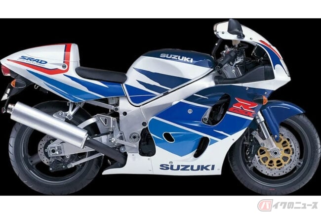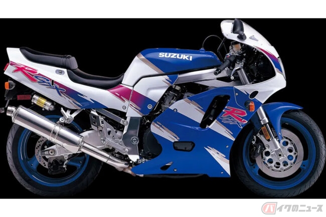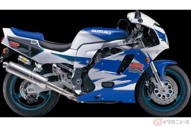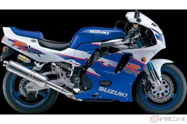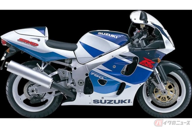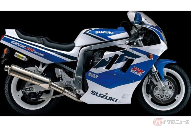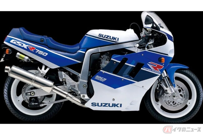 1985年に登場した初代「GSX-R750」は、世界耐久選手権などのレースで培った技術をフィードバックしたモデルで、最高出力77PS、軽量化と高い耐久性の両立を実現したスズキ独自の油冷エンジンを搭載したモデルです。