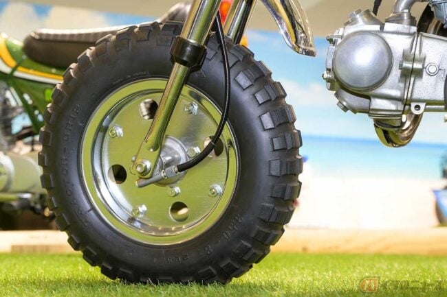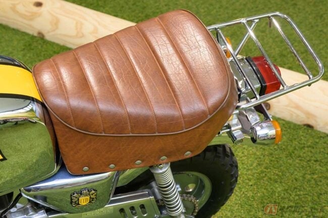 標準仕様の「ゴリラ」に対して、フレームやスイングアーム、前後のフェンダーとホイール、フロントフォークにハンドルまわり、ライトケースに前後キャリア、左右のペダルにサイドカバー、チェーンケースと、徹底的にクロームメッキが施されています。