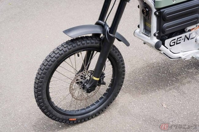 乗り心地は全体的にやわらかく、タイヤも安定感があります。バランスも取りやすくて、細身でコンパクトなオフロードバイクを扱っている感覚を味わえました。段差も「トンッ」と軽く越えてくれて、自転車よりも安心感があるのに、バイクより身軽。個人的には「バイク」と「自転車」の“ちょうど中間”という印象でした。