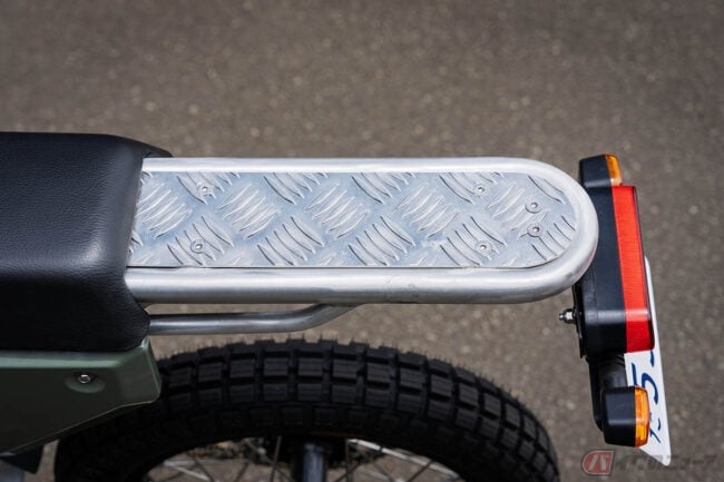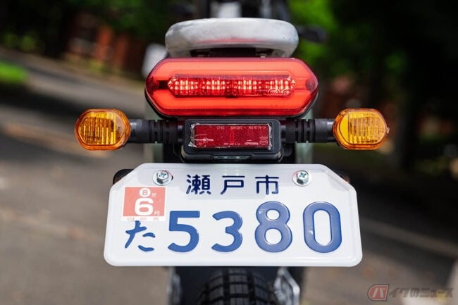 まず、見た目から! 今回、試乗した車両のカラーは、「アンティークグリーン」。シート前に備えられたオフホワイトのカバーにグリーンがアクセントとして効いたデザイン。アースカラーでレトロ感もありつつ、どこかポップで親しみやすいスタイル。コンパクトなサイズ感で、すごく可愛らしい!! でもよく見ると、ヘッドライトがやや大きめで存在感があり、前から見るとキリッとしたお顔立ちにも見えるから不思議(笑)。