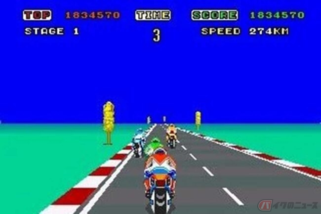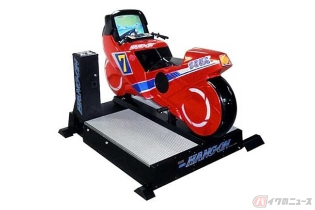 とはいえ「ハングオン」の流行は、ゲームやラジコンの世界にも波及しました。ゲームで有名な「セガ」はアーケードゲームとして、初の体感ゲーム機「HANG-ON」を1985年にリリースし、全国のゲームセンターで大ヒット。プレイヤーはハンドル部にモニターが設置されたバイク型の躯体に跨ってステップに足を載せ、車体をバンクさせるとモニター画面のバイクも傾いて進路を変え、ハングオンのライディングを疑似体験できました。