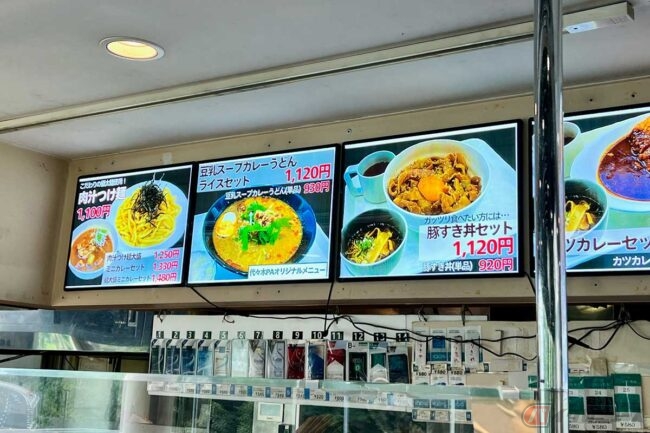 厨房の上に大きなメニュー写真が展示されていて、かなり目立っていました。ライスなしの単品では930円で、「代々木PA」のオリジナルメニューのようです。