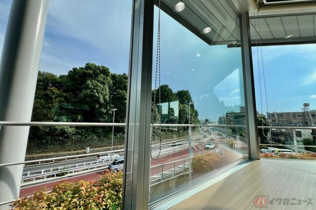 首都高速道路「代々木PA」には、フードコート「レストランよよぎの森」(営業時間:7時~21時)があります。建物2階のガラス張りからは神宮の森を一望することができてホッと一息つけるお気に入りの空間です。緑豊かでありながら、その手前では首都高を走るクルマやバイクが走っていく独特な景観です。