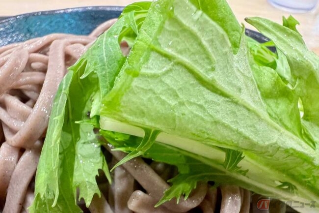 独特な脂の旨味は鴨肉ならではなのかもしれません。臭みも癖もなく食べやすい味わいです。脂とのバランスをとっているのでしょうか、そばにはサニーレタスまで添えられ、清涼感もあります。