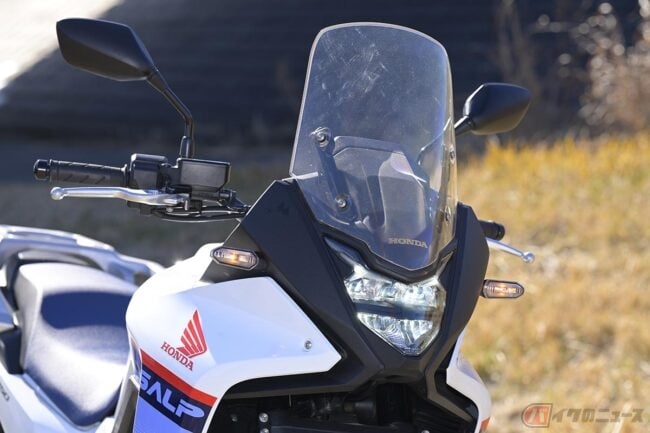 そして大きなウインドシールド。これがまたありがたい存在で、縦にしっかり高さがあるから高速走行時でも走行風を和らげてくれる。冬は冷たい風からライダーを守ってくれるし、長距離での疲労も軽減。寒空の撮影日にダウンを脱いだまま走っても震えるほどじゃなかったのは、このシールド様々のおかげ! 少し前傾して乗ればさらに走行風を減らせるから「こんなに違うのか」と感心したよ。