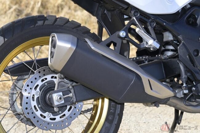 足回りを見れば、前輪21インチ・後輪18インチのスポークホイール(チューブレスタイヤ対応じゃないのが少し残念だけど……)に、前ダブルディスク/後シングルディスクブレーキ。舗装路も未舗装路も、雨の日だって頼れる足元。
