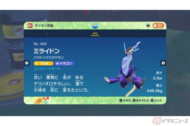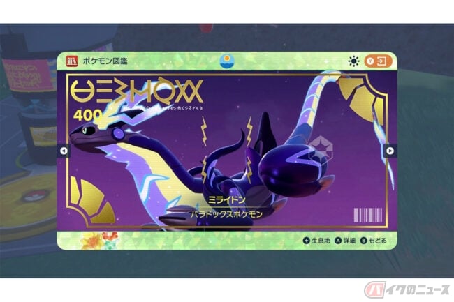ミライドンは、ゲーム「ポケットモンスター バイオレット」に登場する伝説のポケモンです。
