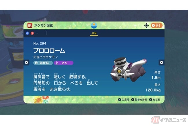 ブロロロームは、ゲーム「ポケットモンスター スカーレット・バイオレット」に登場するはがね・どくタイプのポケモンです。