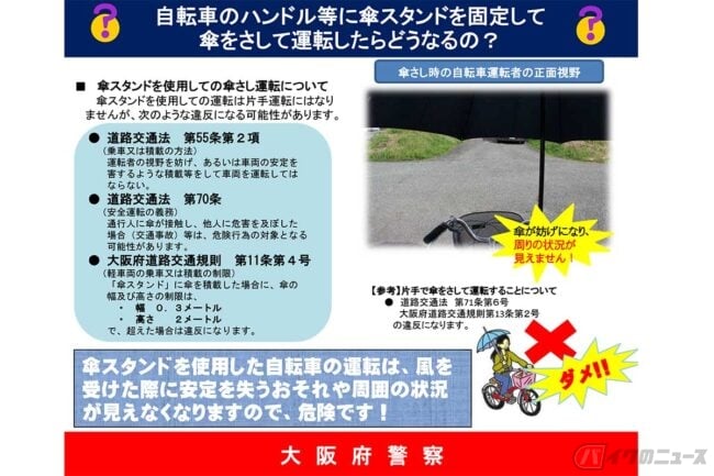 来年度から自転車の「傘さし運転」に「青切符」 では「傘スタンド」を使った場合はどうなる?