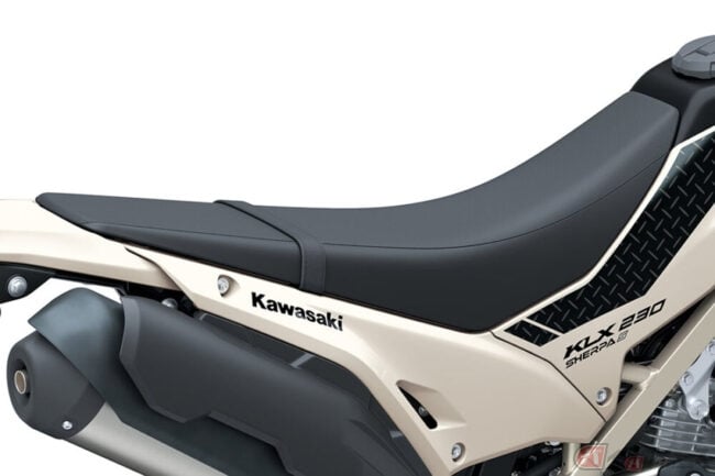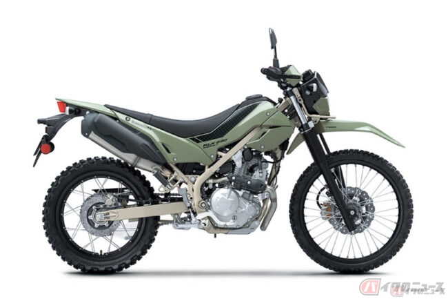 なお、KLX230 SHELPA Sはホワイティッシュベージュ、ミディアムスモーキーグリーン、ミディアムクラウディグレーの3色が用意されており、価格(消費税10%込)は66万円となっています。