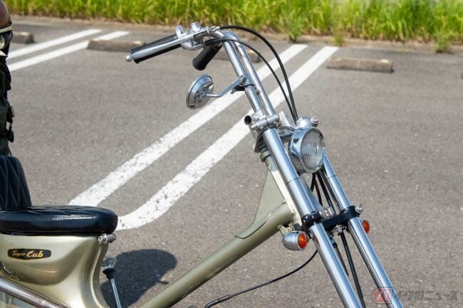「世界の足バイク」ホンダ「スーパーカブ」で「イージー☆ライダー」気分!? 「おはありカブミーティング」に現れたロングフォークチョッパーを解説