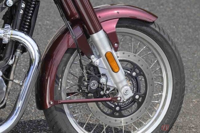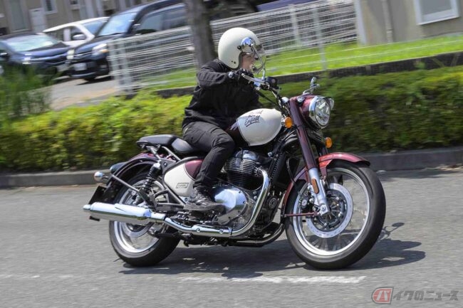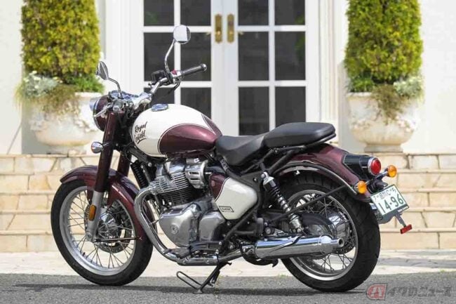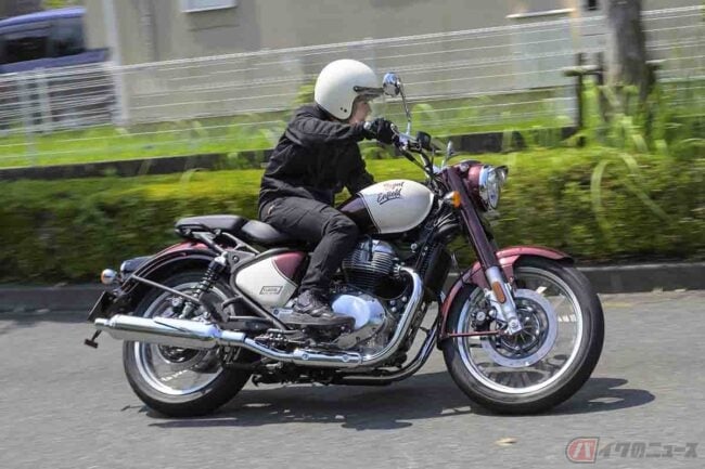 気になる価格は、「Vallam Red」カラーで94万9300円(消費税10%込)で、他にもBruntingthorpe Blue、Teal、Black Chromeの計4色をラインナップ。クラシックなスタイルと大型バイクの余裕をこの価格帯で楽しめるのは、かなり魅力的だと思います。