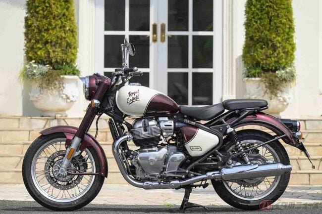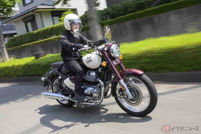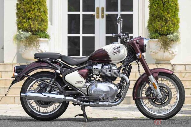 街中に溶け込む“最新のクラシック”モデル!! 窓ガラスに映った姿に思わず笑顔になる!? オシャレに楽しめるロイヤルエンフィールド「クラシック650」の実力 〜小野木里奈の○○○○○日和〜