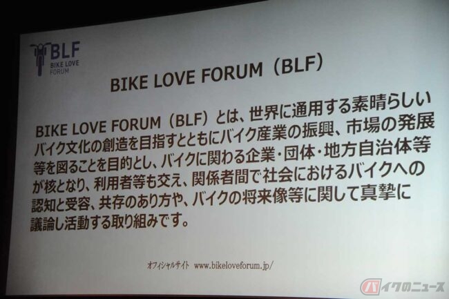 BLFは、経済産業省と地方自治体、製造と販売、モータースポーツ競技に関連するバイク関連のほぼすべての団体が参加し、コロナ禍を除き毎年開催されてきました。