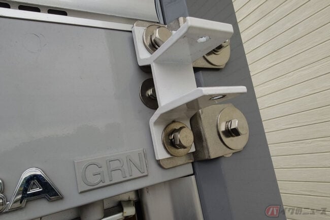 購入当初は、ガレージ柱に近い外壁鉄板にテントユニットを支持する金具を固定しました。しかし、気になることがあり、後日、アイデアを駆使して取り付け位置と取り付け方法を変更しています。具体的には、テントユニットを固定支持する金具の取り付けをオフセットする追加金具(一般市販品)を用意しました。