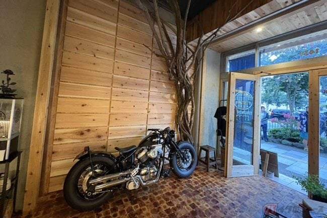 新たにオープンした浅草店は、同ブランドの直営店となるショップで、ショールーム、ディーラーとしての機能のほか、レンタルバイクも用意。浅草という土地に溶け込む「和」の雰囲気を取り入れた店内には喫茶店「雷珈琲」も併設されています。