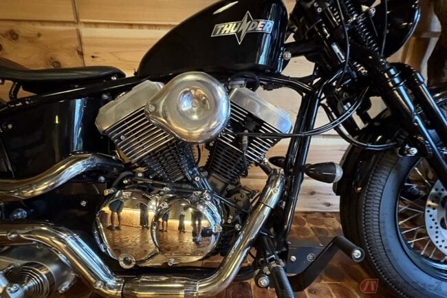 現在、日本メーカーが国内市場に導入していない排気量250ccの空冷Vツインを搭載したThunder 250は、「新車でフルカスタムのバイクに乗れる」を常識にするために設計されたアメリカンモデルで、リアサスペンションを持たない「Haedtail(ハードテイル)」と、リジッドフレームのようなシンプルな見た目ながらシート下にサスペンション備えた「Softail(ソフテイル)」の2機種を用意。