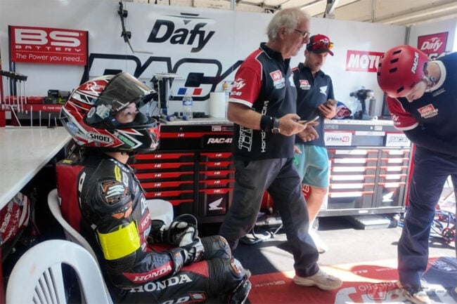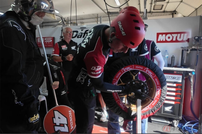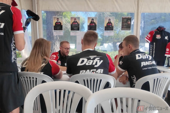 今回の推しチームはSST(スーパーストック)クラスの「Kaedear-Dafy-RAC41-Honda」。『バイクのニュース』でもお馴染み、石塚健選手が所属するチームです。初心者の方にもおすすめなのが、推しライダーや推しチームを決めて観ること。ストーリーが一気に自分ごとになって、レースが何倍も面白くなります。24時間耐久ロードレースの場合は、24時間ずーっと一喜一憂するので、この振り回される興奮をぜひ味わっていただきたい!!