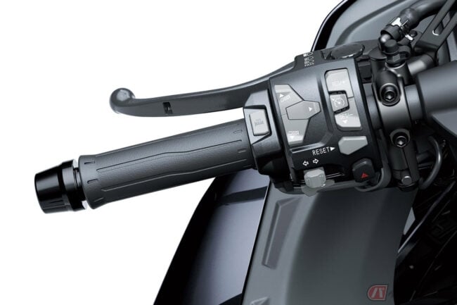 上位グレードの「SE」モデルにいおいては、路面やライディング状況に合わせ瞬時に減衰力を最適化することで快適な乗り心地を提供するしなやかさと、スポーツライディングを容易にするKECS(カワサキエレクトロニックコントロールサスペンション)、落ち着いた乗り心地をショーワのスカイフック式EERA(電子制御ライドアジャスト)テクノロジーを採用することで、タイヤの接地感を高め、コーナリング時に優れた安定性を実現しています。