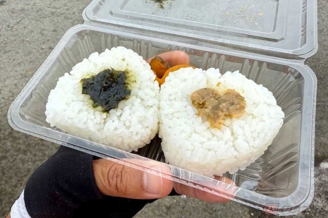 残り10kmを切ったところで登場するのは新米のおにぎりです。南魚沼産コシヒカリの甘みをダイレクトに感じられる、シンプルながら贅沢な一品です。お腹も心もいっぱいにしながら、フィニッシュを目指します。