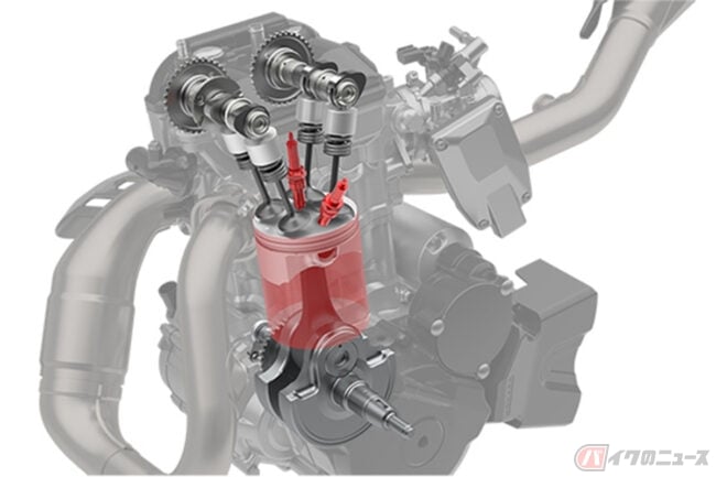 最高出力28kW(38PS)/8,000rpm、最大トルク 37N・m(3.8kgf・m)/6,500rpmを発揮しする排気量398ccの単気筒エンジンを搭載するDR-Z4Sでは、新設計のシリンダーヘッドの採用により、低回転走行時の粘り強さ向上と高回転域の出力向上を実現するとともに、「デュアルスパークプラグ」を採用することで、エンジン全域での燃焼効率とパフォーマンスを最大化。