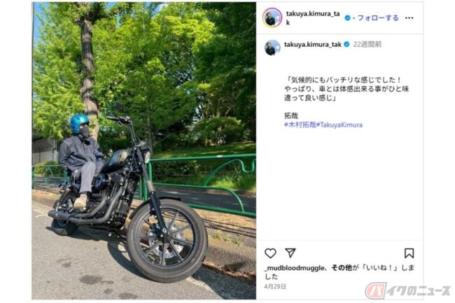 木村拓哉さん 自身の愛車にまたがり「車とは体感出来る事がひと味違って良い感じ」と投稿 バイクと相性が良過ぎると反響