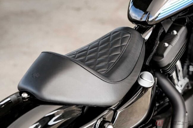 ノーマルではフロントマスクに標準装備される小さなカウル(スクリーン)は無いようですが、ソロシートにミッドコントロールのステップが組み合わされ、スポーティかつクラシカルなスタイルを実現しています。