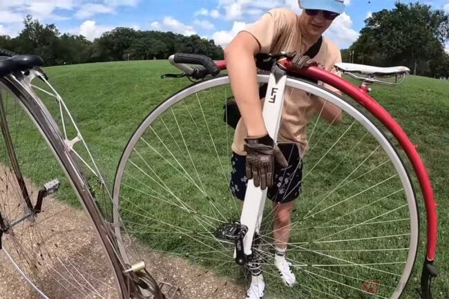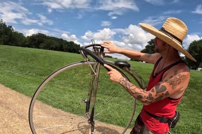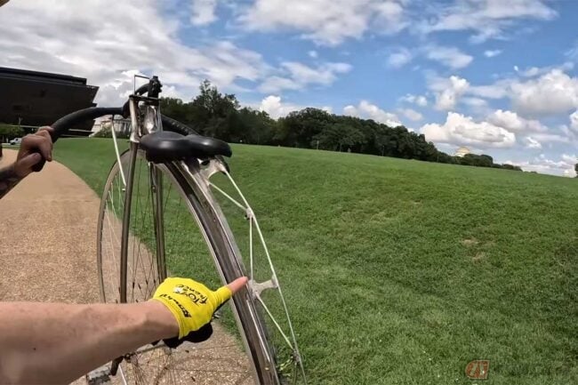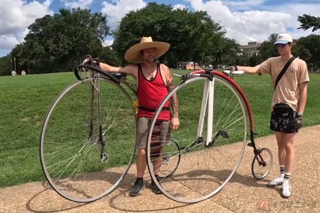前輪でかっ!! 自転車の歴史に必ず登場する「ペニー・ファージング」 じつはいまでも愛好家多い 廃材からDIYしたマニアの動画に注目