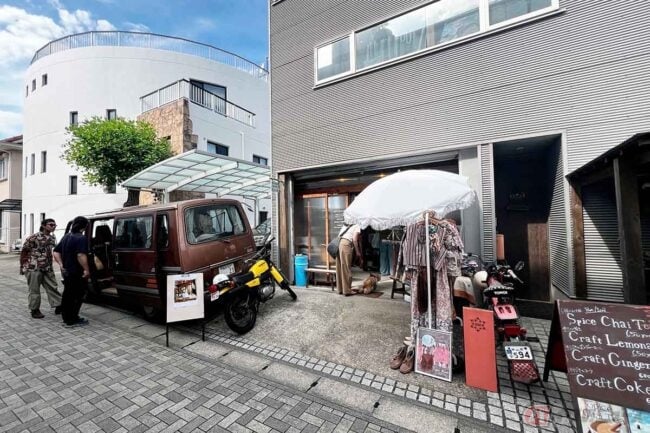 そして店頭に停めてある1980年代のニッサン・キャラバンが、Nさんが言っていた「旅する革工房[BOW]」のBOWさんのアトリエ兼住居です。