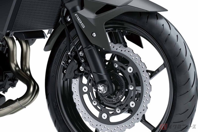 高い剛性と優れた作動性を誇るインナーチューブ径41mmテレスコピックフロントフォーク、5段階のプリロード調整機構付きリアショック、直径310mmのセミフローティングフロントブレーキディスクなども採用されています。