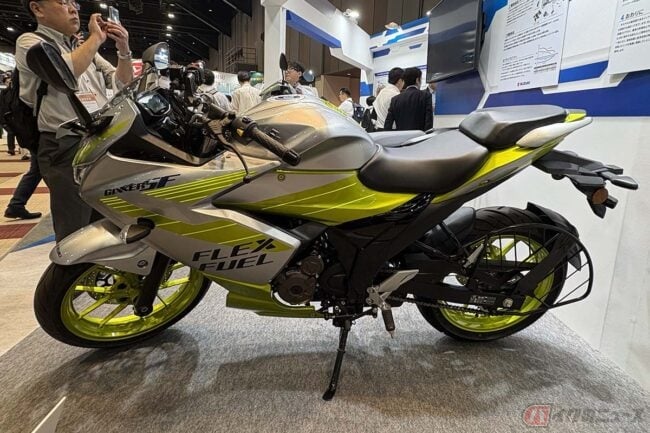 バイオエタノール85%までの混合燃料で走行可能!! スズキが「Japan Mobility Show 2025」で「ジクサーSF250 FFV」を公開 どんなモデル?