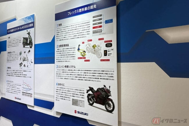 そこで、すでにインドで発売されているジクサーSF250 FFVでは、ピストンリングやバルブ周り、燃料ラインやポンプなどにガソリン車とは異なる材質や表面処理を施工。併せてエンジンコントロールユニット(ECU)などの電装部品も変更し対応しています。