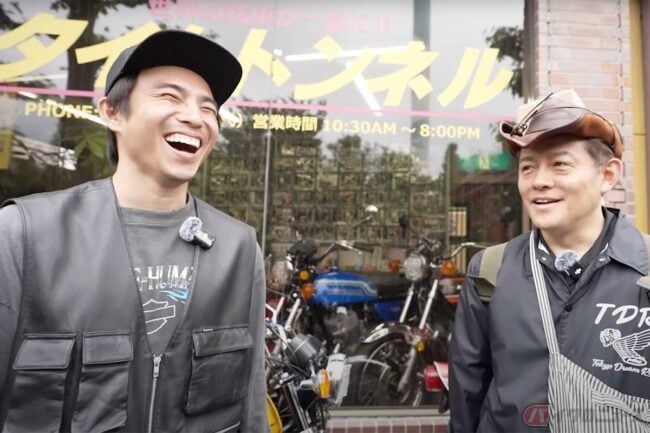 俳優の中尾明慶さんが自身のYouTubeチャンネルで、お笑い芸人のハンバーグ師匠ことスピードワゴン井戸田潤さんと東京の旧車専門店「タイムトンネル」を訪れ、ずらりと並ぶ往年の名車を前に興奮が止まらない様子を公開しました。「バイク好きにはたまりませんね」、「ワクワク感が伝わる」などコメントが多数寄せられています。