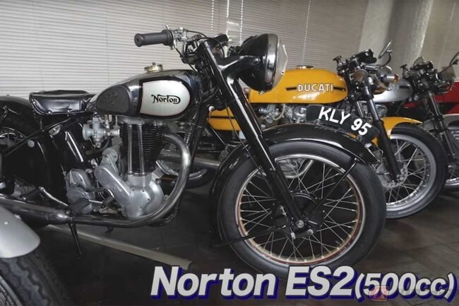 店内にはホンダ「CB250」やNorton「ES2」、DUCATI「350 DESMO」など、往年の名車がずらりと並びます。2人は「黄色が渋い」、「セパハンはきつい」など会話が止まらず、往年のヨーロッパ車の魅力に触れます。
