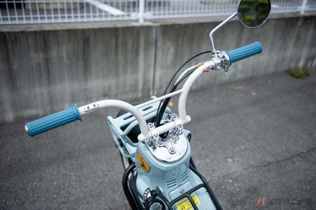 そしてカブカスタムには欠かせないバーハン化は、同店オリジナルのバーハンキットを使いワンオフのハンドルを合わせることでイメージを一新。