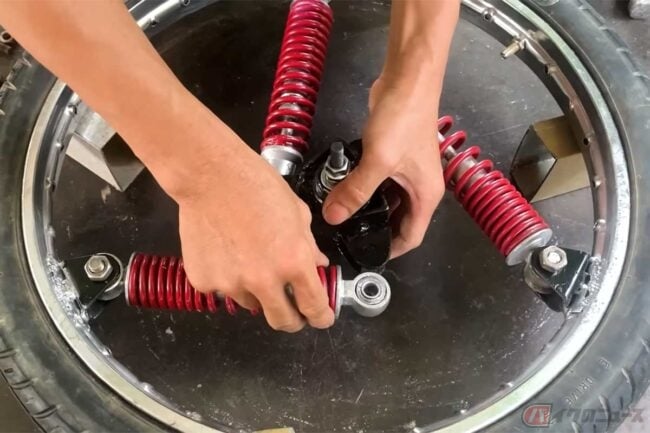 自転車DIY動画は数あれど、前輪のリムの内側にサスペンションを装着して見せた例は多くないでしょう。しかし、そんなムチャな魔改造をしれっと実践してしまった人がいます。