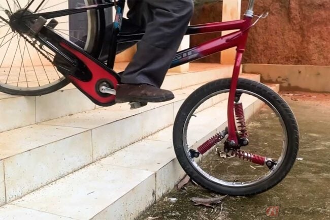 この発想はヤバい!? フロントホイールの中にサスペンションを仕込んだ魔改造自転車のDIY動画に反響 視聴回数29万回超え