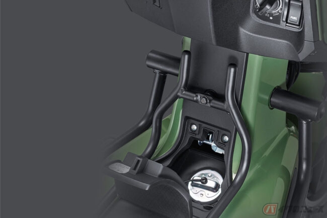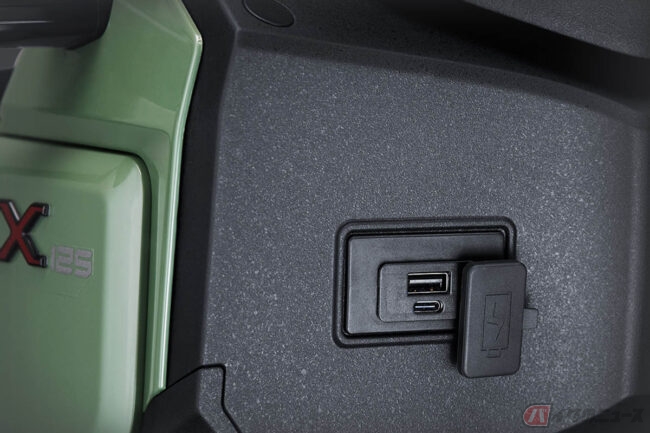 セミブロックタイヤを装備することでアドベンチャーテイストを強めたスクエアX125では、フロントフェイス同様に角張った外装が採用されており、スマートキーやアイドリングストップ機能、USB電源などの利便性を高める装備も搭載。