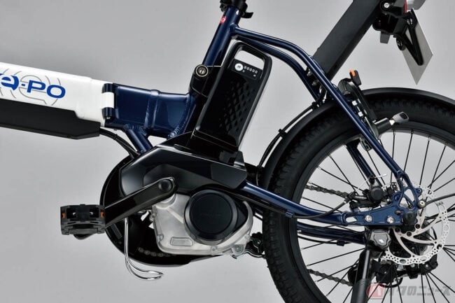 スズキからの新しい提案として登場したe-POは、パナソニック サイクルテック製の電動アシスト自転車用バッテリー、駆動ユニットを使用した原付一種相当のペダル付き電動モデルです。