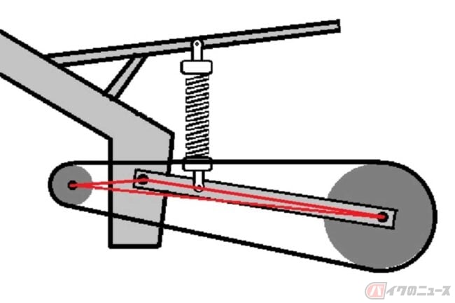 まずチェーン駆動の場合、適切な「張り調整」が重要になります。これは路面からの衝撃でスイングアームが沈んだ時に、エンジン側と後輪側のスプロケットの間隔が広がるため、その長さの変化に対応するために適切な遊びを設ける必要があるからです。