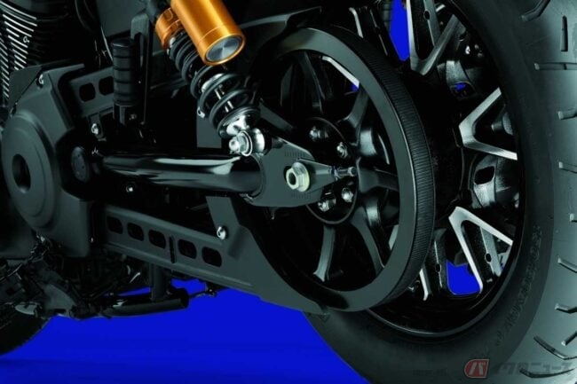 ヤマハがベルトドライブを採用したのは少々遅く、1999年発売の「XV1600 ROADSTAR」が初になりますが、後の多くの「STAR」シリーズに採用し、「BOLT-R」(2021年発売モデルで生産終了)もベルトドライブでした。