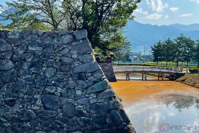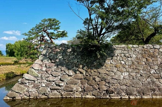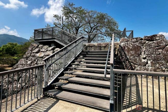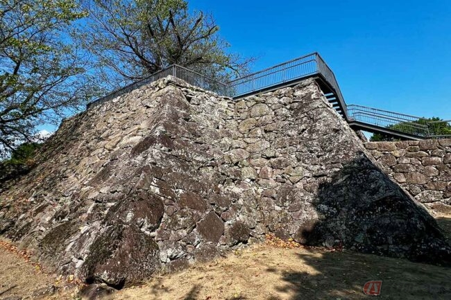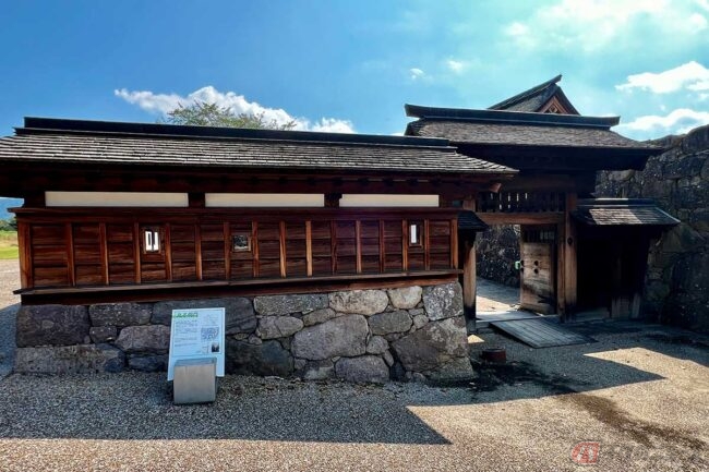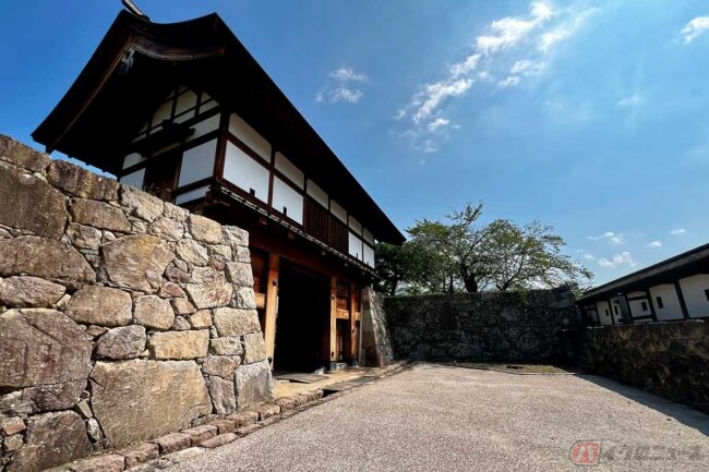 廃城で建物は取り壊されましたが、1981年に国指定史跡となります。いま見られるのは2004年、2015年に復元された太鼓門や堀、土塁、二の丸東部などです。