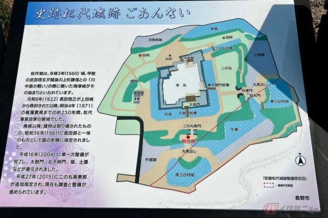 1622年には真田信之(さなだのぶゆき)が上田から移封されて、江戸時代を経て明治に廃城されるまでの約250年間、松代藩真田家10万石の居城となったとのこと。
